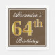 Elegant Brown, Faux Gold 64th Birthday + Name Napkin