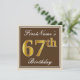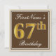 Elegant, Brown, Faux Gold 67th Birthday + Name Invitation
