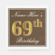 Elegant Brown, Faux Gold 69th Birthday + Name Napkin
