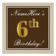 Elegant, Brown, Faux Gold 6th Birthday + Name Poster