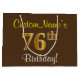 Elegant, Brown, Faux Gold 76th Birthday + Name Large Gift Bag