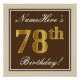 Elegant, Brown, Faux Gold 78th Birthday + Name Poster