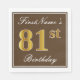 Elegant Brown, Faux Gold 81st Birthday + Name Napkin
