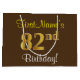 Elegant, Brown, Faux Gold 82nd Birthday + Name Large Gift Bag