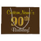 Elegant, Brown, Faux Gold 90th Birthday + Name Large Gift Bag