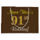 Elegant, Brown, Faux Gold 91st Birthday + Name Large Gift Bag
