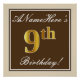 Elegant, Brown, Faux Gold 9th Birthday + Name Poster