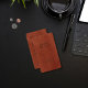 Customise and personalise this elegant brown faux vegan leather business card with 3 layers of typography in different shades to simulate the embossed look.