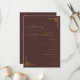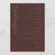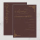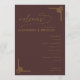 This elegant wedding program features a rich, deep brown background with gold accents that create a luxurious and sophisticated feel. The layout is vertical, showcasing a balanced hierarchy of text elements including cursive script for the welcoming message and clean serif fonts for the ceremony details. Decorative geometric motifs in gold add traditional elegance to the corners, enhancing the formal and classic style. Perfect for a timeless celebration, this design conveys warmth and formality, making it ideal for significant life events like weddings.