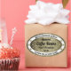 Make a lasting impression with this elegant and modern product label design featuring a brown gold coloured small to large glitter graphic with sparkling stars. The pretty white oval border matches with a dark golden shimmery frame and diamonds.