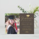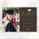 Send your family and friends a unique personalised photo graduation card featuring your custom photo on the left and to the right a faux gold grad cap with the word "Graduate", class/year, name and other ceremony details in formal faux gold script calligraphy to personalise on an brown background. Designed by Susan Coffey.