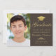Elegant Brown Gold Script Cap Photo Graduation Announcement