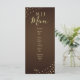 Display your wedding feast in style with this elegant long wedding menu card. Featuring delicate golden fairy lights over a rich chocolate brown background, this design includes a modern monogram and clear sections for starters, mains, salads, and desserts. Perfect for rustic barn weddings, country chic receptions, or outdoor starlit dinners.