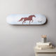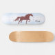 Elegant brown horse silhouette and calligraphy on light sky blue gradient Skateboard. Text can be personalised.