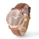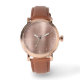 Elegant brown leather strap men's watch with rose gold accents, a brushed metal style dial, and white numbers.
