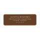 This return address label features a sophisticated and minimalist design with a deep chocolate brown background, creating an elegant and warm tone. The layout is clean and centred, utilising ample spacing between lines for a balanced appearance. A modern serif font adds formality to the text, which is arranged in a vertical hierarchy, emphasizing clarity and readability. Perfect for those who appreciate simplicity and style, this label combines functionality with a touch of class, making it ideal for formal correspondence or special occasions.