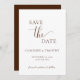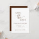 This simple minimalist save-the-date card is perfect for announcing your upcoming wedding. This card features a dark brown-and-white design with elegant text. Customise text on the front and back of the card with all the details of your special day. #savethedate #ourwedding #minimalistwedding