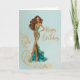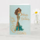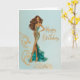 Elegant Brunette in Gold Teal Fashionista BDay Card