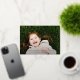Modern style religious Christmas card featuring a simple and minimal design with "Joyful" in an elegant brush script along with your message and family name over your favourite photo. All text on the front is in real foil. The back has a photo collage consisting of six square pictures.