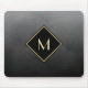 Elegant Brushed Black With Simple Gold Monogram Mouse Pad