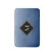 Capture attention with this elegant and stylish blue and black monogram bathmat. This simple and sophisticated brushed gradient design with a modern diamond shaped frame with a gold border can be personalised by adding your monogrammed initial. Flat printed image, NOT metallic.