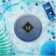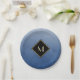 Elegant Brushed Blue With Simple Gold Monogram Paper Plate