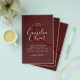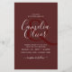 ⭐ NOTE: This is a low-budget flyer paper option. SATIN is the thicker finish here, matt is like paper. Envelopes NOT included. For more traditional invitation paper weights and sizes view the attached collection or transfer the design via the tools on your product page to 'invitation'. ⭐ Deep red burgundy monochrome wedding item with trending typography style and plenty of template fields to create your own custom unique design. For assistance access, Zazzle's FREE LIVE DESIGNER or use the TRANSFER tools on the page.⭐Please view the attached collection and 'additional products' to view the full wedding suite featuring this design or colour theme. This may include wedding and bridal shower invitations, rehearsal dinner invites, bridesmaid lunch invites along with save the date, rsvp's, favour tags, stickers and much more. Suitable for spring, summer, autumn, fall, winter weddings, indoors or outdoors, mountain, lake, barn, countryside, castle, garden, backyard. Tons of great designs and options for all budgets.