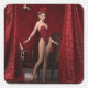 Elegant Bunny Girl on Red Velvet Curtain Square Sticker