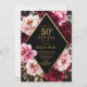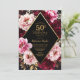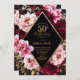 Celebrate your milestone in style with this luxurious burgundy and blush floral birthday invitation featuring gold accents. The design showcases lush watercolor peonies in deep burgundy, pink, and blush tones against a dramatic black background, beautifully framed with a shimmering gold diamond border. Perfect for elegant celebrations, garden parties, or evening events, this invitation exudes sophistication and timeless beauty.