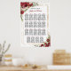 Stunning winter design for wedding seating chart with tables features watercolor burgundy and blush roses flowers mixed fresh eucalyptus greenery foliage mixed gold sparkles and elegant woven into gold frame. A wonderful gently design for any boho wedding event.