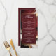 Impress your guests from the moment they sit down with this stunning burgundy and gold marble wedding menu. The deep wine-red background is beautifully contrasted by white and gold swirling textures along the borders, framing your dinner selections in luxury. Featuring a classic serif font and elegant script, this menu is designed to complement sophisticated winter weddings or black-tie evening receptions.