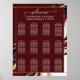 Guide your guests to their seats in style with this large-format seating chart. Matching the burgundy marble collection, this poster features a bold "Welcome" in white script against a deep red centerpiece, flanked by luxurious gold-flecked marble borders. It is a functional piece of decor that ties your entire reception theme together. Features an organized 12-table layout with clear headings for guest names. Customize with the couple's names and wedding date at the top.