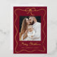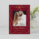 Celebrate the season with our Elegant Burgundy and Gold Foil Ribbon Bow 2 Photo Holiday Card. This charming design showcases your cherished family photo surrounded by a festive gold foil ribbon frame, complete with a bow at the top. The burgundy background beautifully highlights the handwritten "Merry Christmas" greeting in gold foil script, which can be customised with a greeting of your choice. Add your family name for a personal touch. The back features space for a second photo and a heartfelt message. Perfect for sharing joy with loved ones this holiday season!