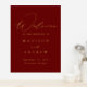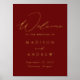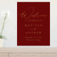 Elegant wedding welcome sign featuring "Welcome" in a modern gold foil calligraphy script with a rusted burgundy background (or colour of your choice). Personalise the burgundy and gold foil wedding sign by adding your names, wedding date, and wedding location. The vertical welcome sign is designed to coordinate with our Modern Elegance wedding collection and is available in other colours.