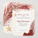 Nautical Boutique Co.'s elegant tropical holiday party invitation design features watercolor burgundy and gold palm trees and greenery paired with watercolor ivory starfish. The black and Christmas maroon typography is whimsical hand lettering paired with easy-to-read modern block type. Easily personalise this template holiday invitation for your event. #HolidayParty #TropicalHolidays #ChristmasParty