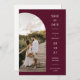 Elegant Burgundy Arch Photo QR Code Save the Date Invitation