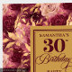 Featuring lush burgundy and blush blooms with shimmering gold accents, these napkins perfectly complement a 30th birthday party décor, from table settings to dessert displays. Their vibrant watercolor design brings a chic and modern aesthetic while keeping the party feeling warm and inviting.
