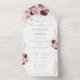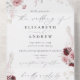 Elegant Burgundy Blush Pink Roses Floral Wedding All In One Invitation