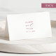 Welcome your guests and direct them to their table with these beautiful place cards featuring delicate hand-drawn botanical detail in burgundy and bush pink hues and elegant modern typography. Ability to order place cards with each guest name, table number, and meal option printed by placing an "individual" card order at a time or, order in "bulk" erasing guest name, table number, and meal option from template text boxes, leaving them in blank, and hand write these later on once you receive your cards at home. NOTE: these place cards arrive flat, you will need to score and fold them manually. You can also select "customise further" and move and drag text to different positions, increase or decrease text font size, or even change the text style. Part of our "Modern Elegant Typography Pink Burgundy Wedding" collection with a variety of coordinating products.