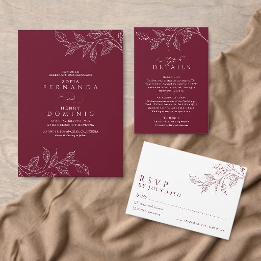 Elegant Burgundy Botanical Floral Wedding Invitation