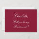 Elegant Burgundy Bridesmaid Proposal Invitation, please personalise both sides of the card as desired, using the online personalisation template before ordering. The design can also be personalised for other bridal attendant roles, such as Flower Girl, Maid of Honour/Honour and Matron of Honour/Honour.