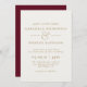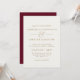 This elegant wedding invitation features a chic modern design. The front is a cream with a modern gold typography, while the reverse side is a rich burgundy with your initials in a gold typography.