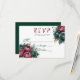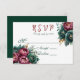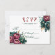 Elegant Burgundy Emerald Peony Gold Trim Wedding RSVP Card