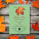 This elegant fall wedding invitation is perfect for a modern autumn wedding. The simple design features green fall leaves with elegant black and burgundy typography on a sage green background
