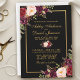 Elegant Burgundy Floral Black Gold Wedding Invitation