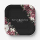 Elegant Burgundy Floral Black Wedding Paper Plate