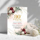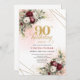 Elegant Burgundy Floral Gold Frame 90th Birthday Invitation