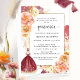 Delight your guests with this beautiful quinceañera invitation with delicate burgundy watercolor stains, exquisite floral elements and beautiful detail with quinceañera in burgundy dress. Same invite also available in Spanish. Elegant invitation with modern hand written calligraphy elements, and floral frame in blush pink, peach and cream, champagne tones. Ability to add ceremony and reception details. Unique back with soft watercolor stains and on quinceañera on the centre with glittery stars.