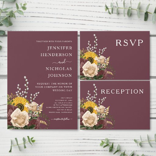 Elegant Burgundy Floral Sunflowers Wedding SuiteDesigned by Maggie B Design