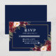 Elegant Burgundy Floral Wedding Blue Gold RSVP Card